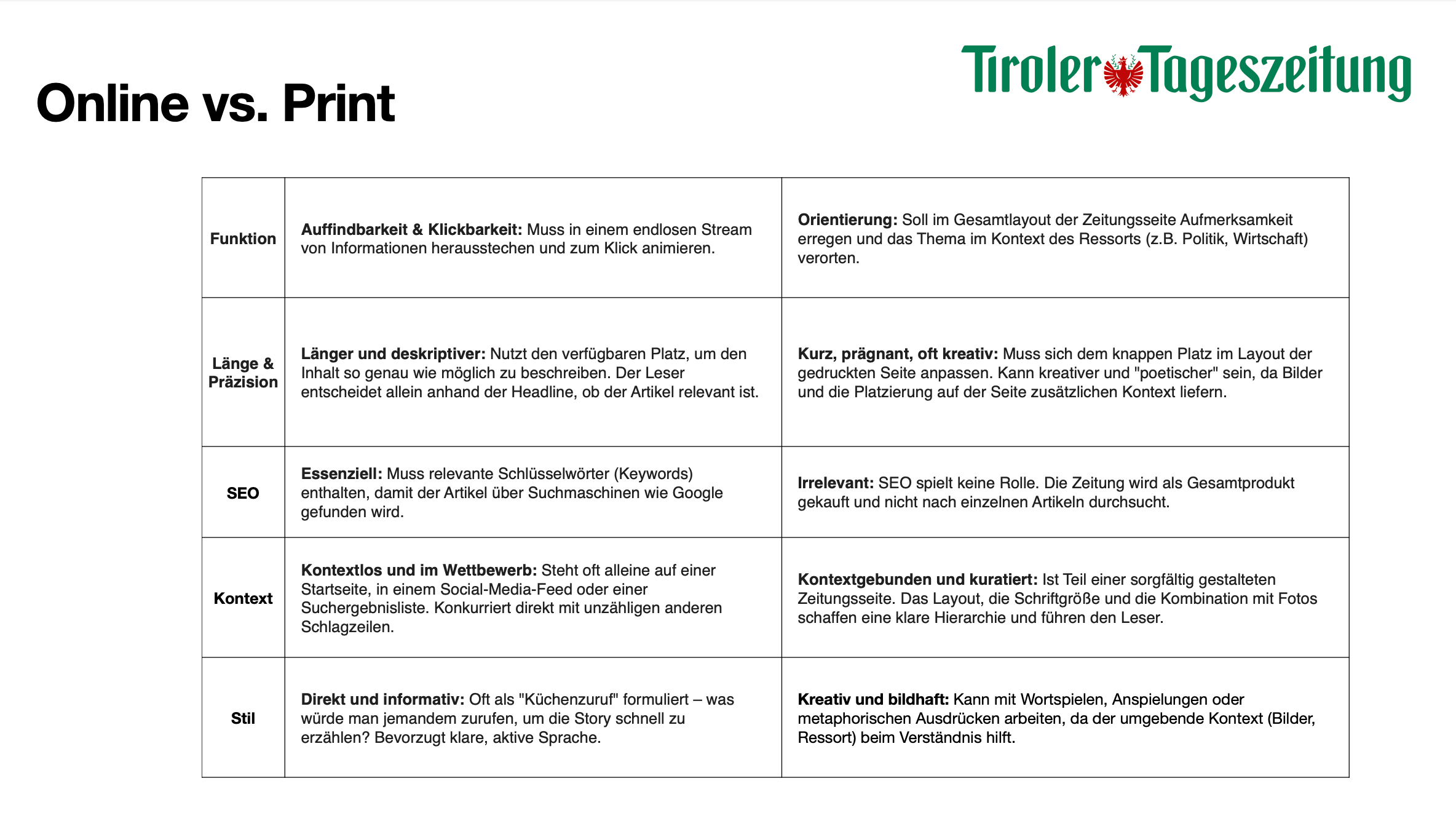 Einig war sich die Runde, dass wir an den Schlagzeilen im Grunde nicht zu viel arbeiten können. Was leider nicht funktioniert: ein umfassendes Regelwerk. Dafür ist Sprache und ihre Anwendung im Journalismus viel zu komplex.